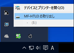 ⑧ タスクバーにある△(OSにより異なります)をクリックし、USBメモリのマークをクリックし、安全にUSBメモリを取り外してください。 [例:USBメモリ 安全な取出し方の手順](ウインドウ10の場合)