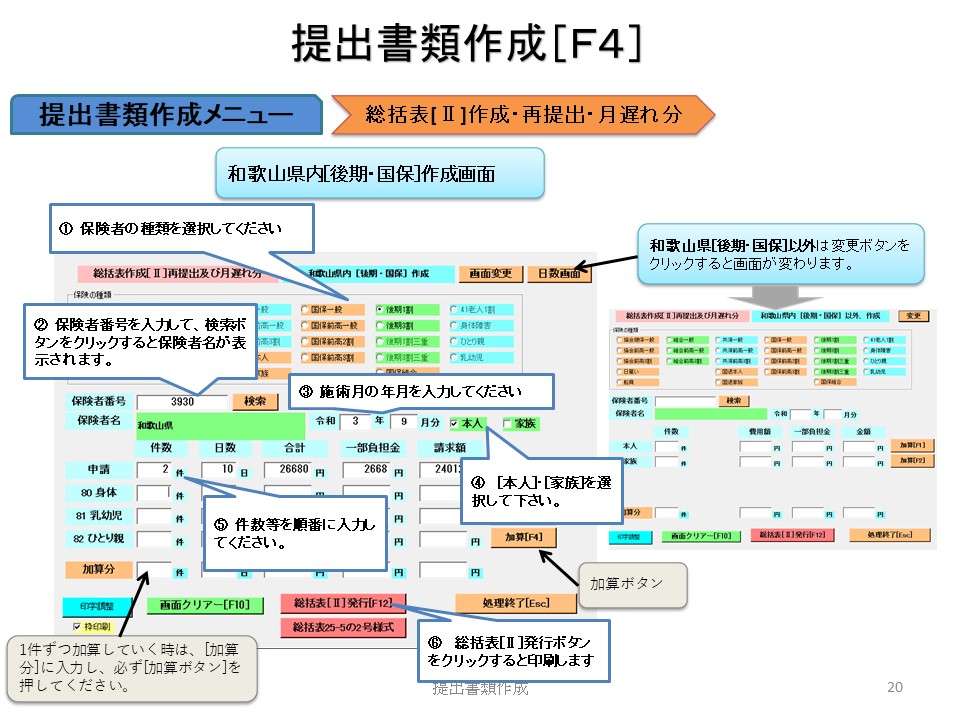 和歌山鍼灸・総括表[Ⅰ][Ⅱ]は「当月」と「再提出・月遅れ」は別途で作成して下さい