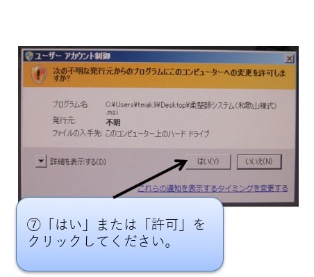 ⑤インストールの途中で、セキュリティーの表示の画面が出ましたら「はい」または「OK」を押してください。