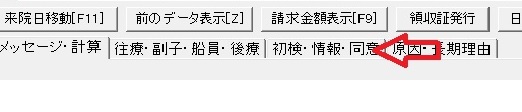 ①【初検時相談支援料】を算定しない場合は施術データ作成時に [初検・情報・同意]をクリック