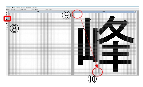 ⑨このあたりでマウスのボタンを押し、そのまま右下にドラッグします