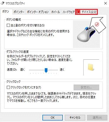 ②[マウスのプロパティ]が表示されます。