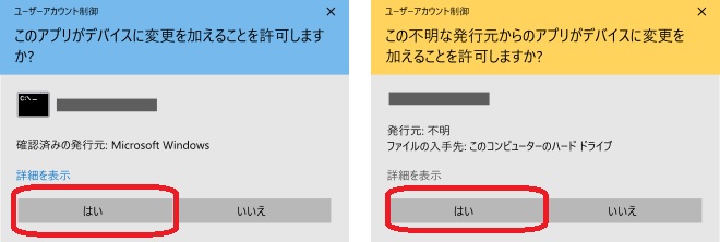 ④以下のようなユーザーアカウント制御のメッセージが出たら「はい」を選択してください。