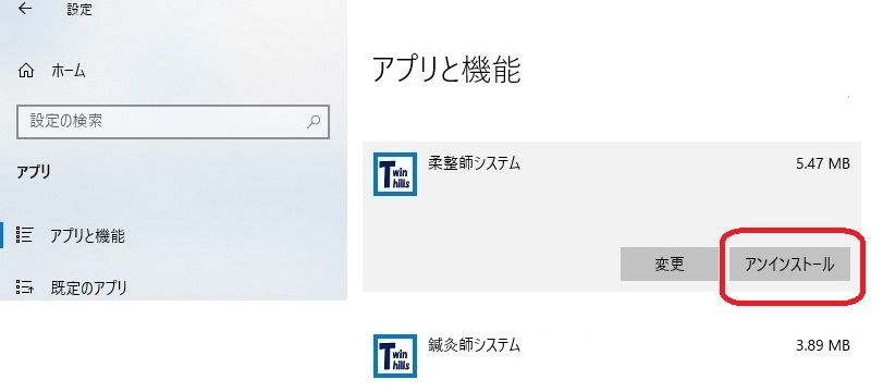 ③[アプリと機能]画面でソフトのアプリを選択し、「アンインストール」をクリックします。
