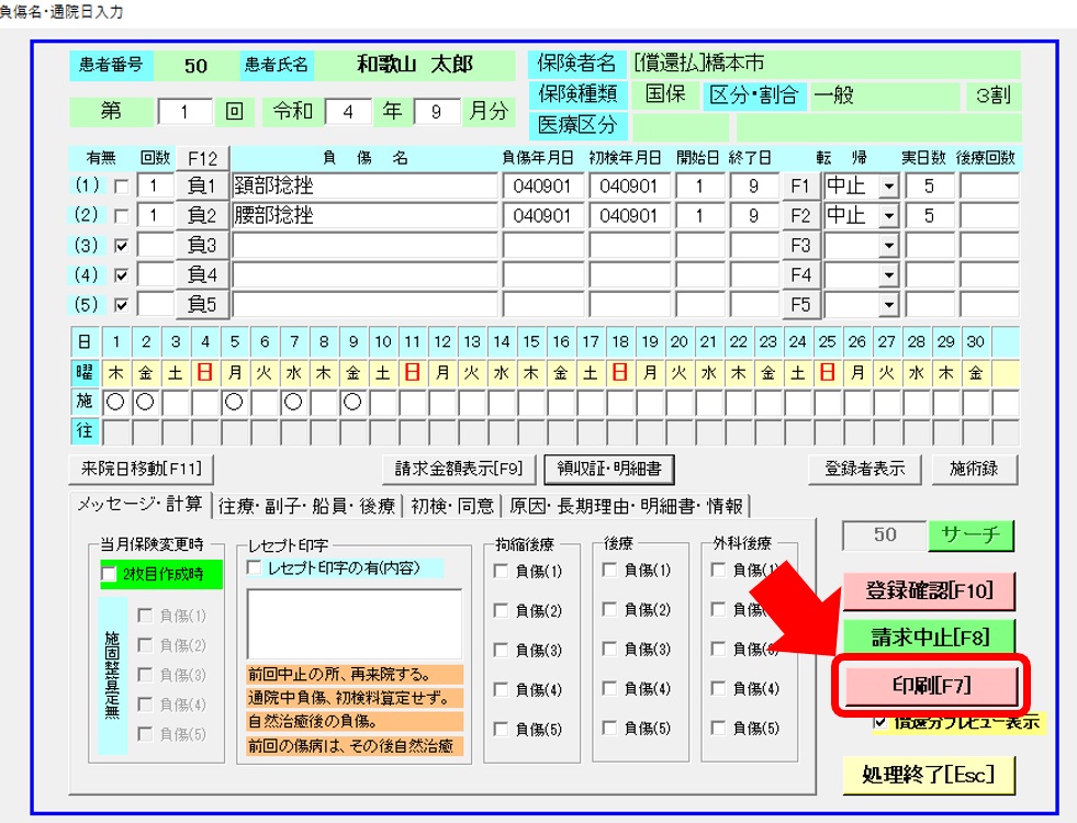 ※[レセプト印刷]には表示しません。