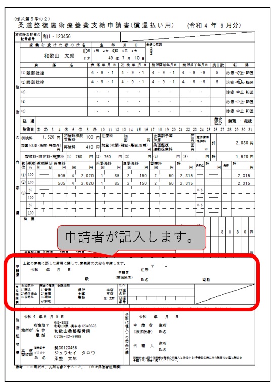 ①[施術録作成]で「償還払」にチェックを入れて登録します。