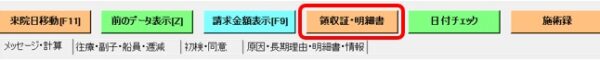 もしくは、①負傷名・通院日入力→「領収証・明細書」をクリックします。